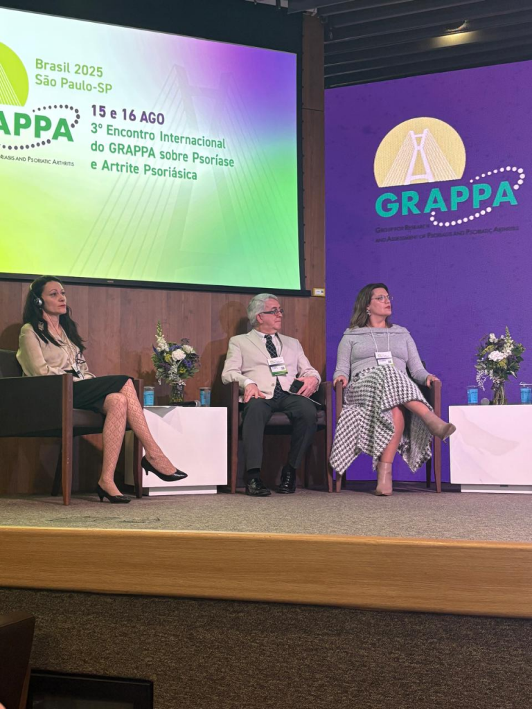 No congresso intyernacional do GRAPPA 15 de agosto de 2025, em Sao Paulo, foram discutidas mecanismos de acáo de vários novos medicamentos para controle total da artrite psoriásica e psoríase e também foi amplamente comentado o benefício da reduçao do peso nos pacientes com obesidade, esteatose hepática e diabetes com as novas canetas aplicadoras de medicamentos como Ozempic e Mounjaro; sem pre com acompanhamento médico. Se você tem psoríase e faz uso dessa medicação, nos conte se houve melhora da psoríase pelo email atendimento@clinicasabbag.com.br